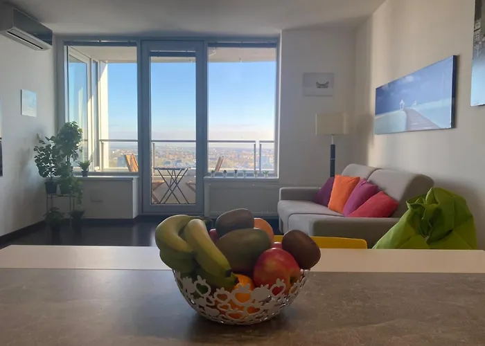 The spacious 1-bedroom Fantastic View From The 20Th Floor Apartment Bratislava is located 2.6 km from Bratislava Main train station and approximately 5 minutes' walk from Merkur Spielo. Set only steps away from the Ondrej Nepela Arena, this 65 m² apartment with a patio overlooks the city.